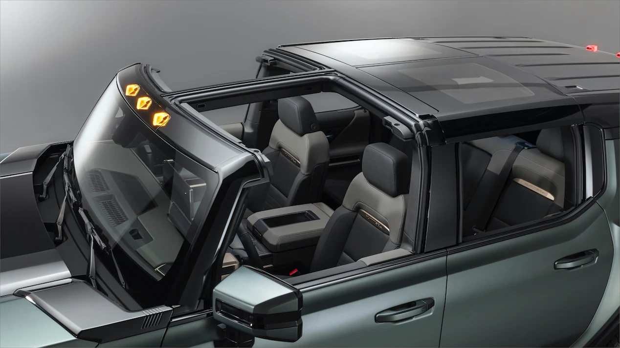 • Aydınlatma, ön imza HUMMER EV ışık çubuğu, yürüyüş ve kalkış animasyonu, şarj durumu ve dönüş sinyallerini içerir
